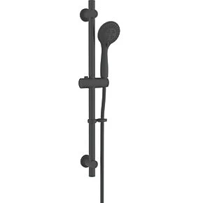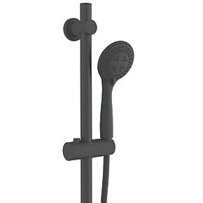 Contemporary design with a matt black finish. Features 3-function handset with rub-clean nozzles and a 1.5m universal fitting stainless steel hose. Set also includes riser rail, hose retaining ring and fixings. Suitable for all pressure systems.