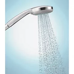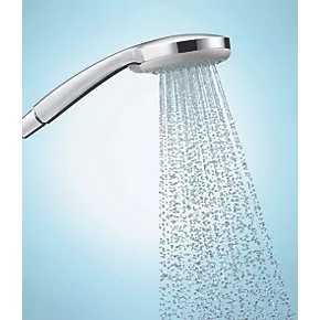 Features hand shower, shower rail, height-adjustable shower holder, an anti-kink shower hose and soap dish. Remove limescale easily and fast with the QuickClean technology. Save water and energy with EcoSmart technology. Shower holder slide inclination angle can be adjusted by 45°. Spray pattern adjustment by turning the rotatable spray disc.