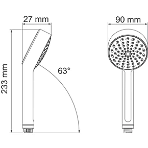 Modern, single spray hand shower with convenient rub-clean nozzles for effortless limescale removal. Easy to install and suitable for all shower systems.